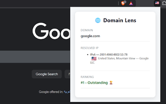 Domain Lens هو إضافة مجانية لمتصفح Chrome مصممة لتوفير رؤى سريعة وموثوقة حول أي موقع ويب مباشرة من شريط أدوات المتصفح الخاص بك. يعرض معلومات أساسية مثل اسم النطاق، وعناوين IP المحلولة (كل من IPv4 وIPv6)، وموقع الخادم الجغرافي، بما في ذلك تفاصيل البلد والمدينة. هذه الأداة مفيدة بشكل خاص لمطوري الويب، والمسوقين، وعشاق الأمن السيبراني الذين يسعون لجمع بيانات النطاق بكفاءة دون الحاجة للانتقال بعيدًا عن الصفحة الحالية.